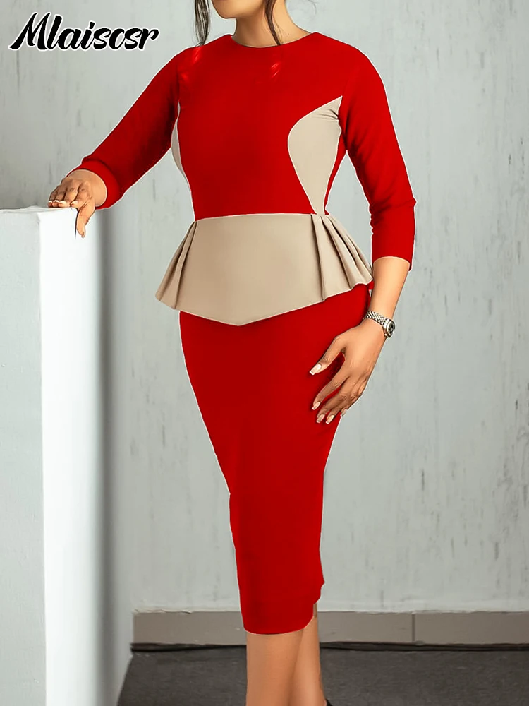Black Patchwork Mid Dresses Waist Ruffles Women Cocktail Evening Birthday Party Gowns Dress