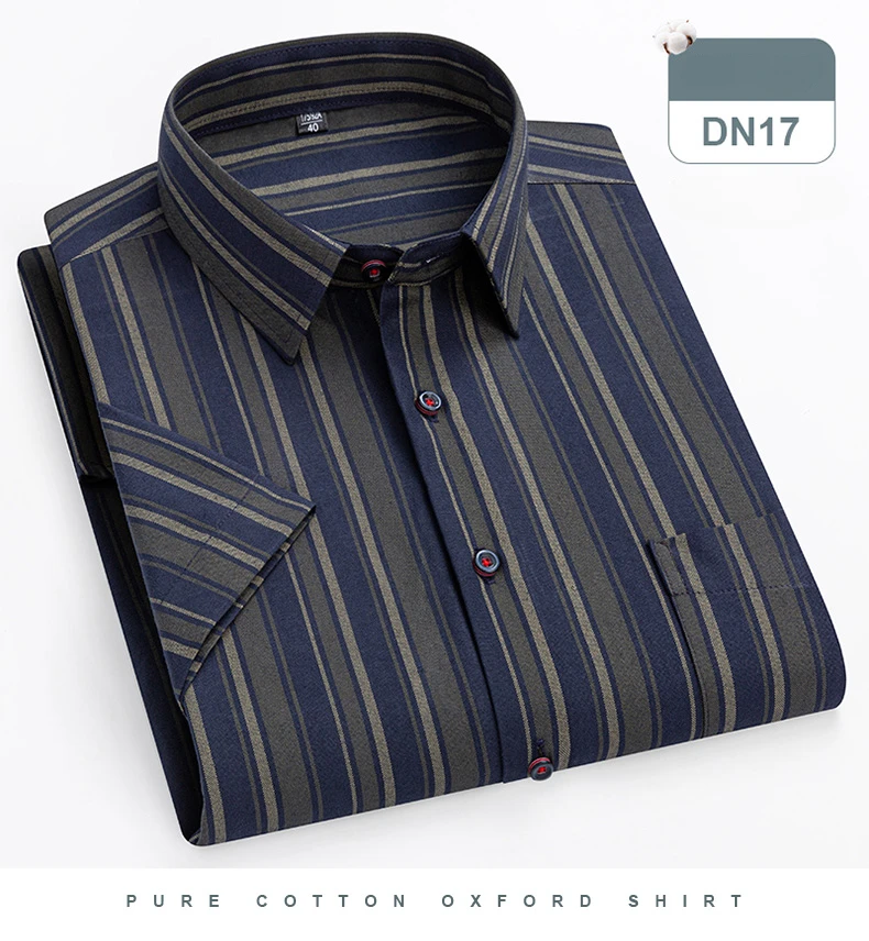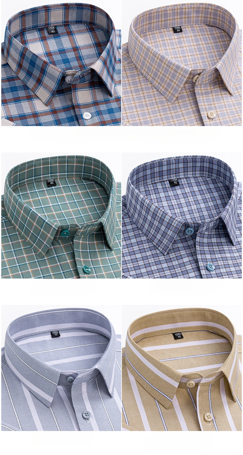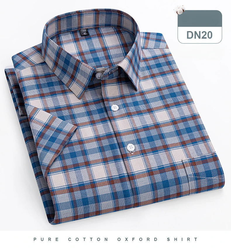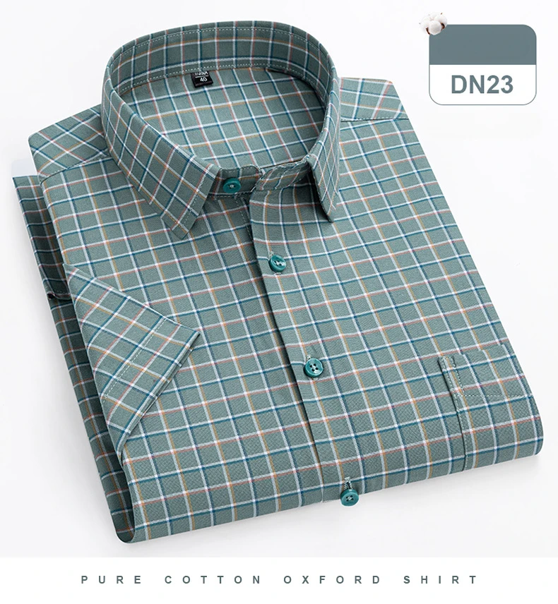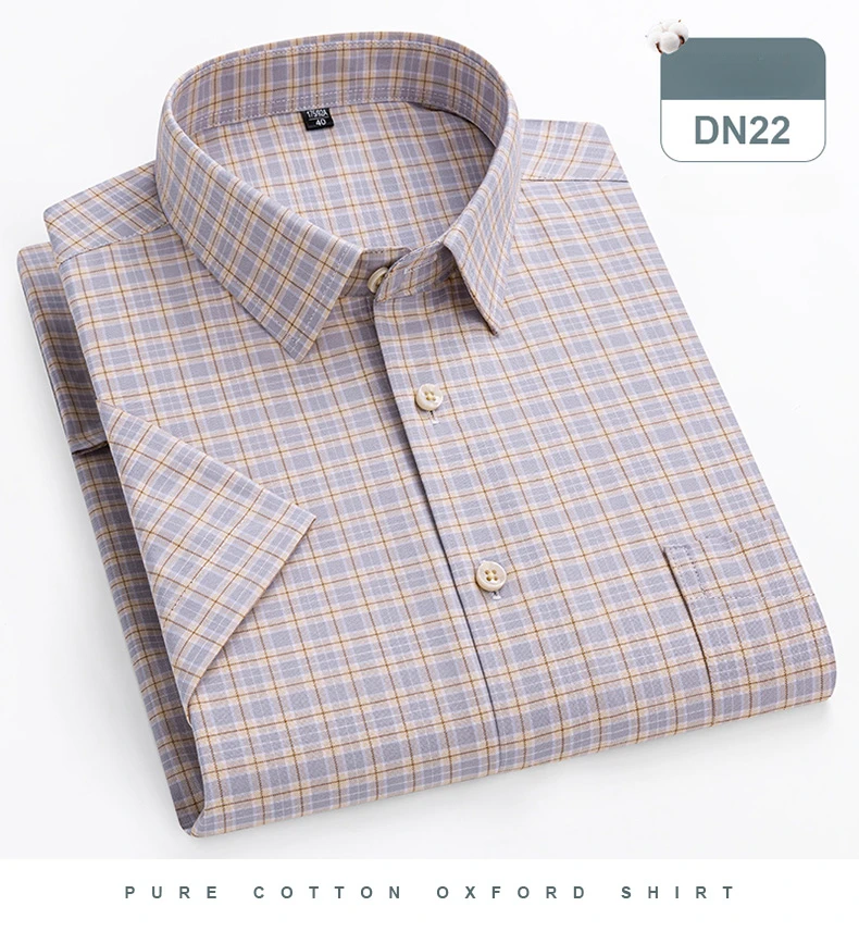 cotton oxford short sleeve shirts men slim fit formal shirt soft plaid office