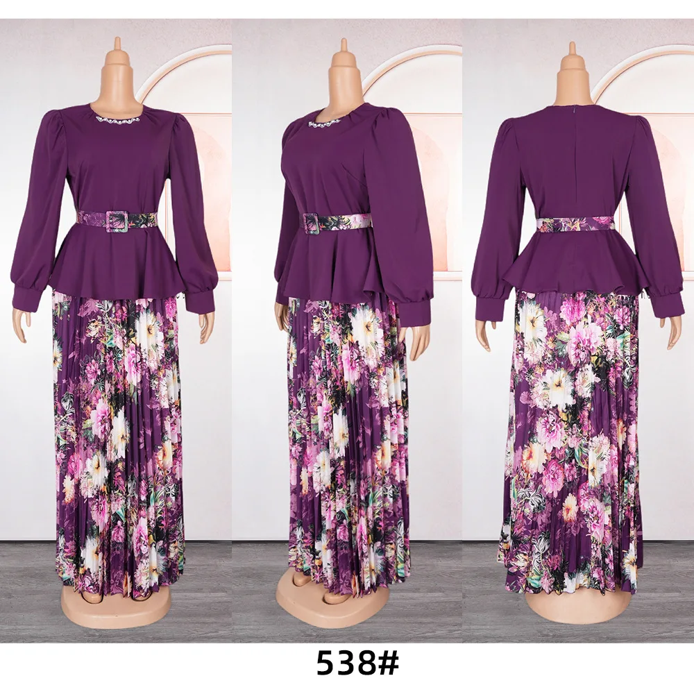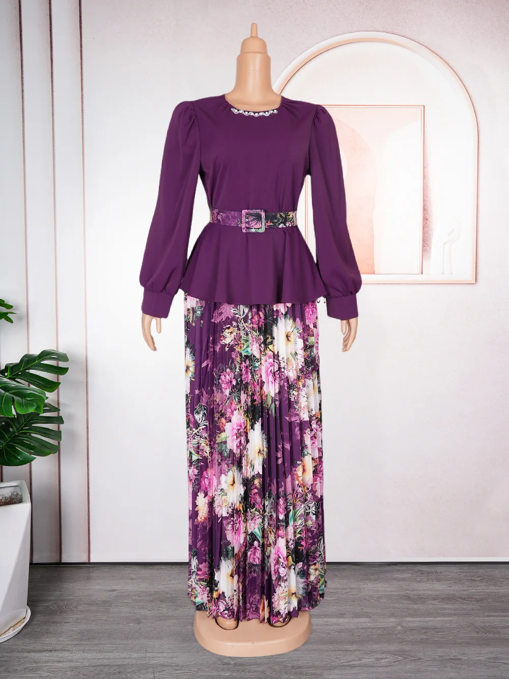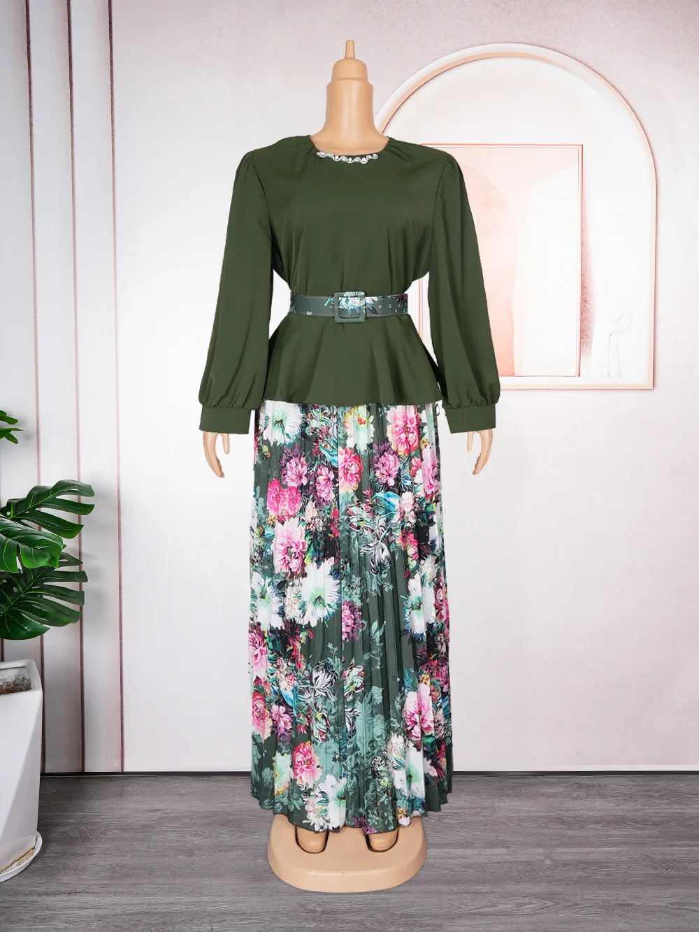 Elegant Fashion Printed Dresses Full Sleeve Belt Luxury Birthday Party Dinner