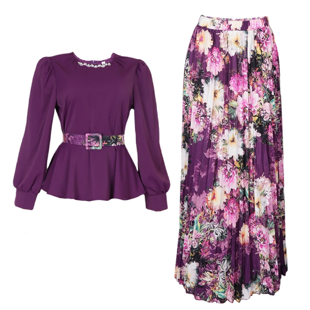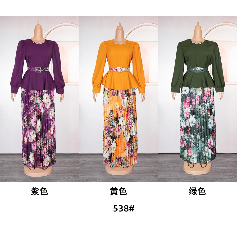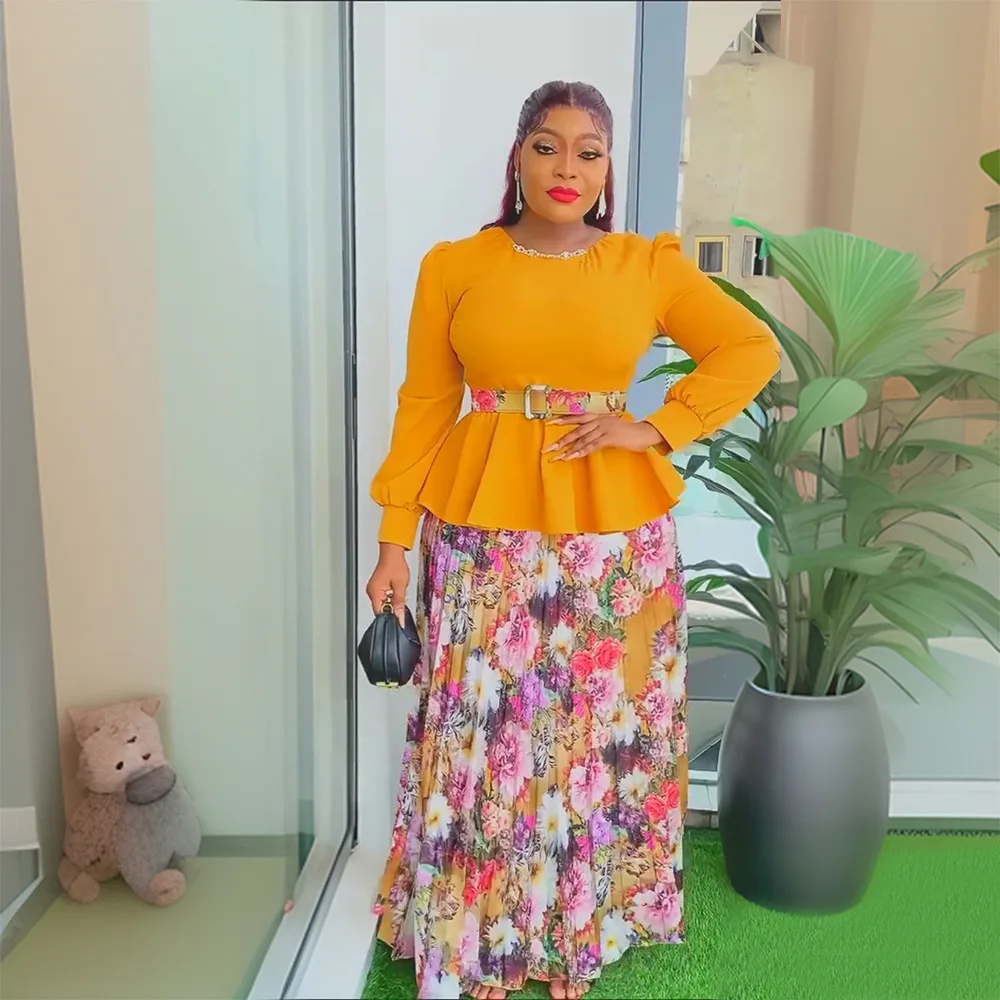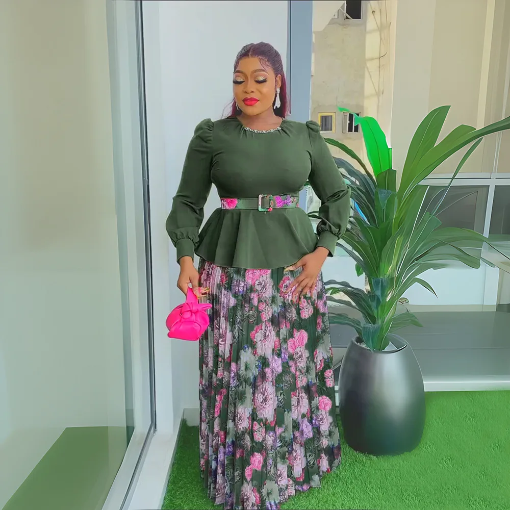 Elegant Fashion Printed Dresses Full Sleeve Belt Luxury Birthday Party Dinner