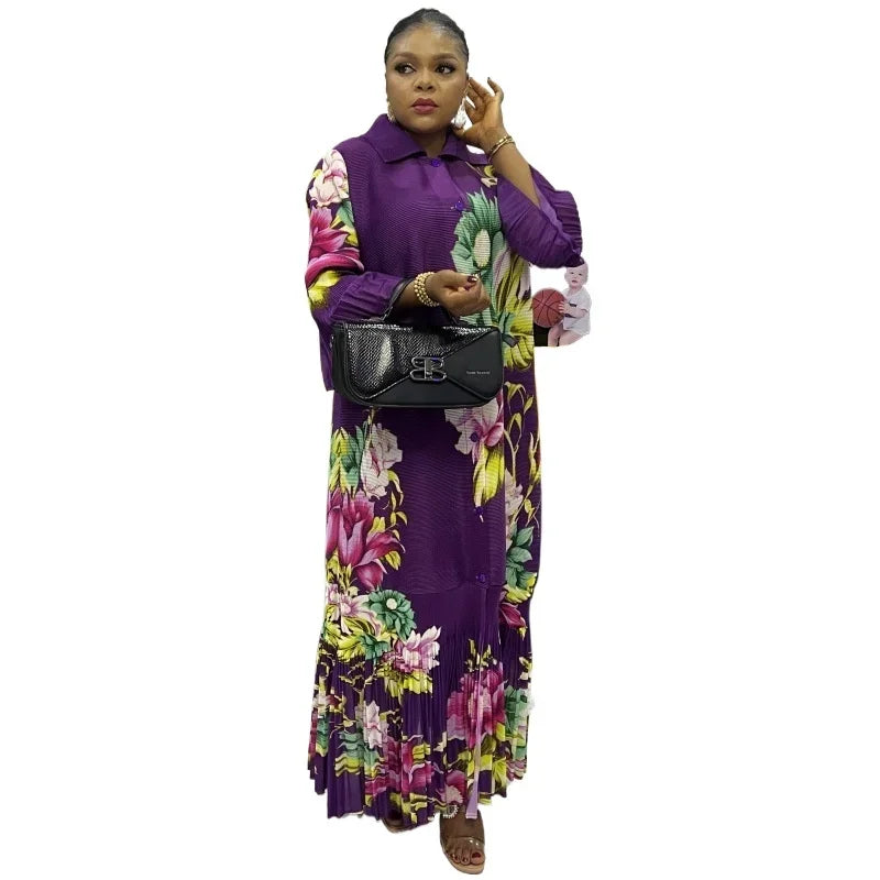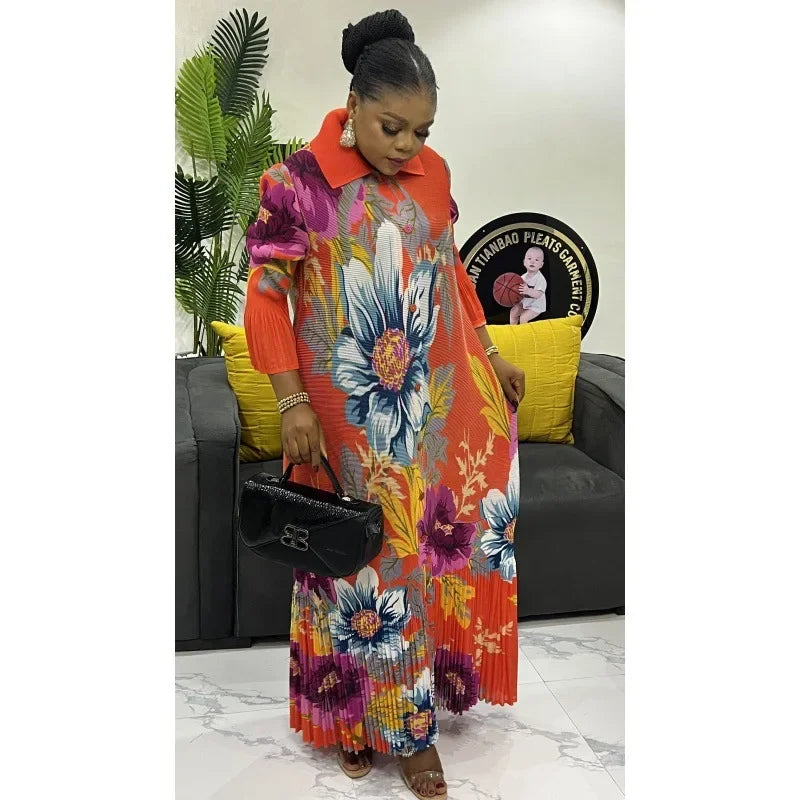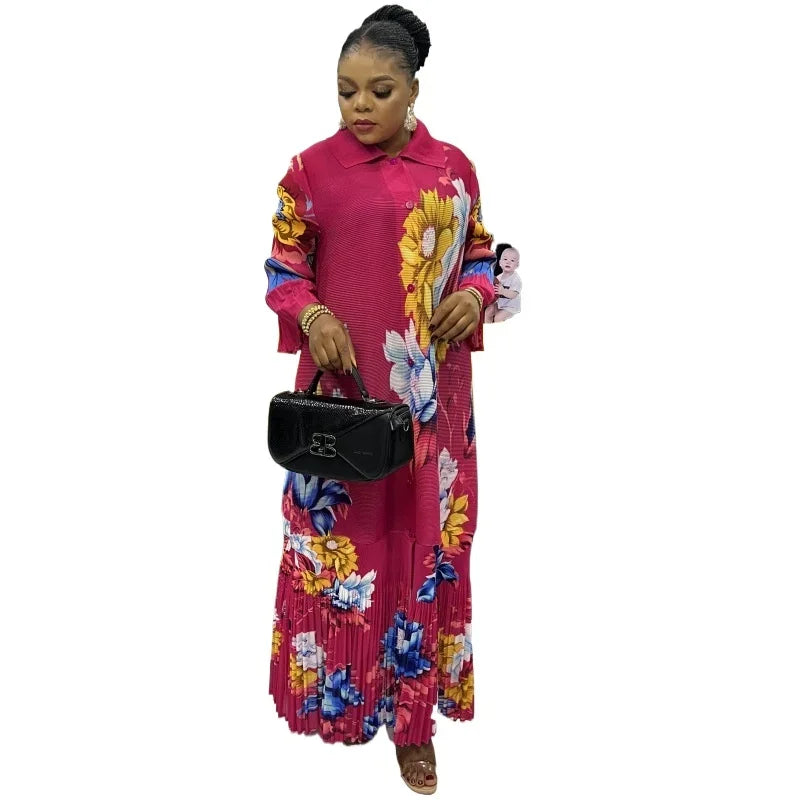Pleated Elegant Dress Women Bell Sleeve Ruffled Robe Loose Large Size Women's Cardigan Dress