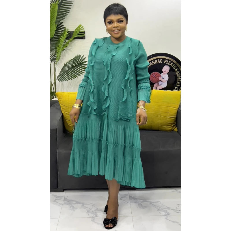 Solid Color Dress Splicing Bead Loose Dresses Women's Clothing