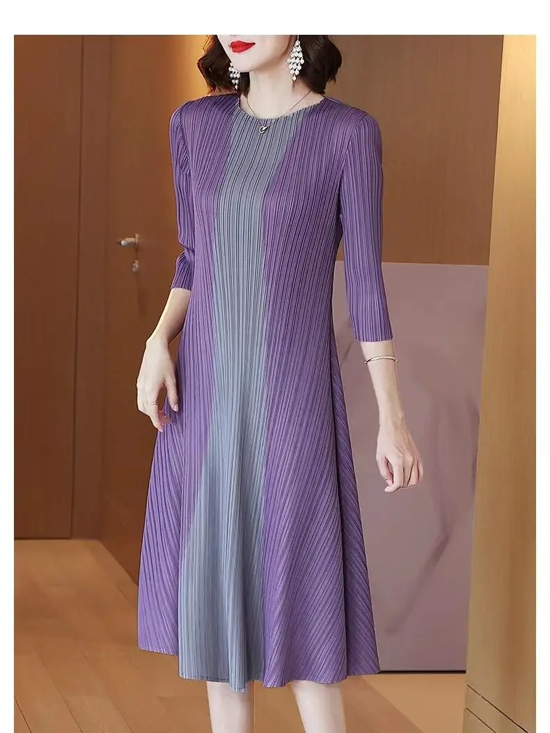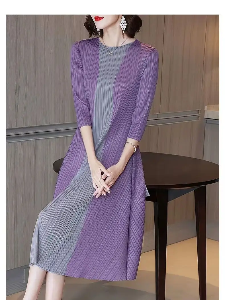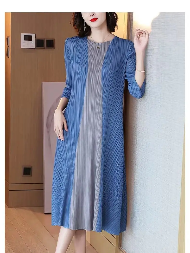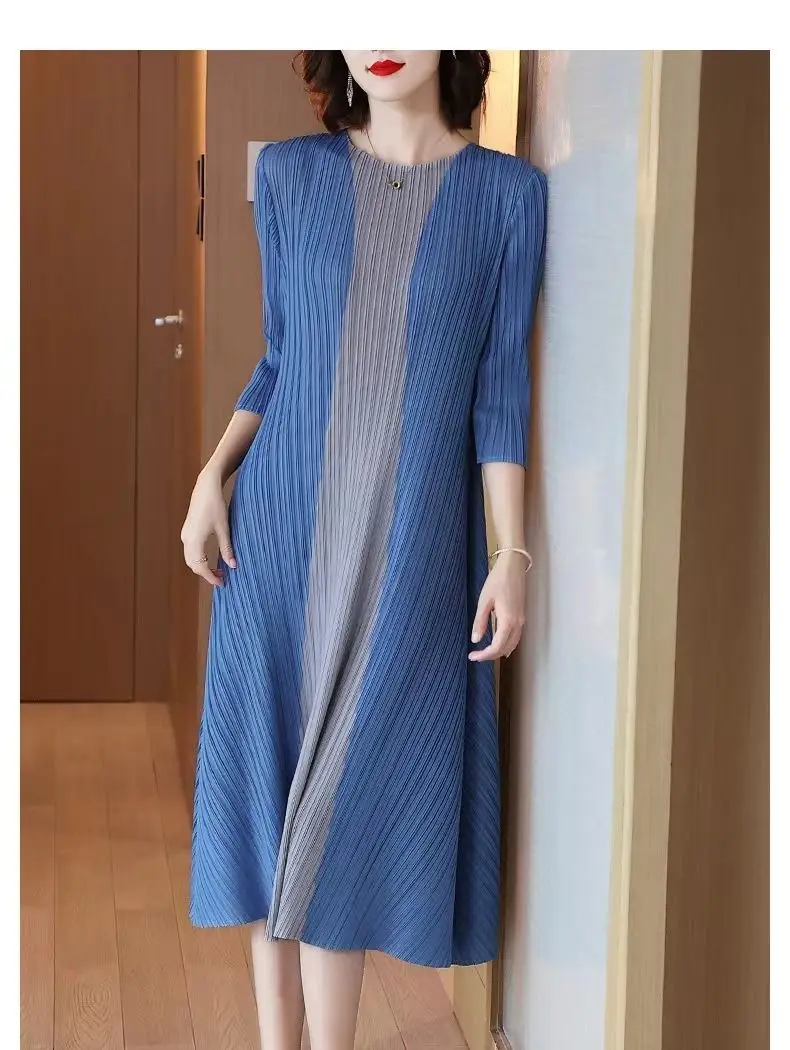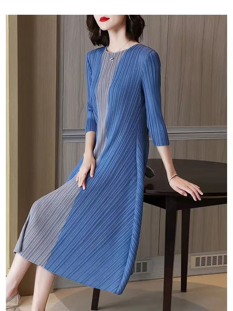 Women Vintage Elegant Summer Casual O Neck 3/4 Sleeve Loose Midi Dress