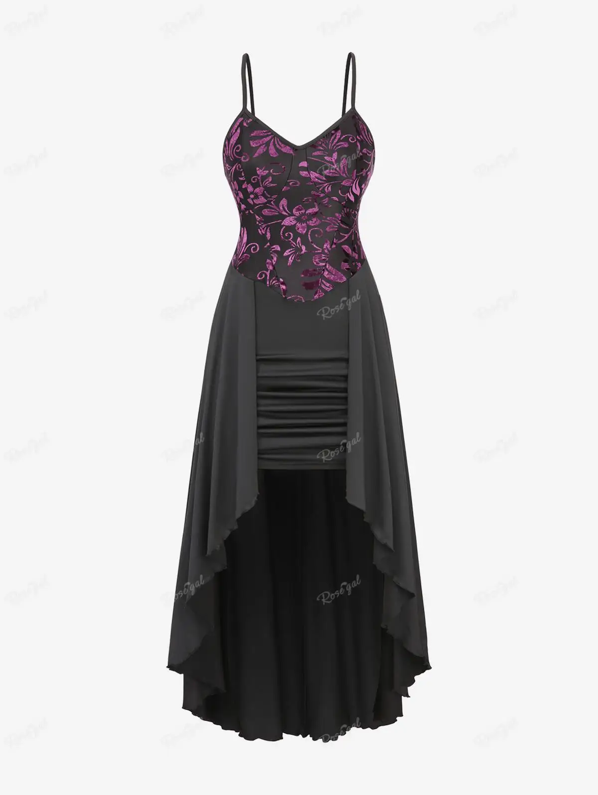 Women's Dresses Ruched Ruffles High Low Cami Dress Buckle Crop Top Set